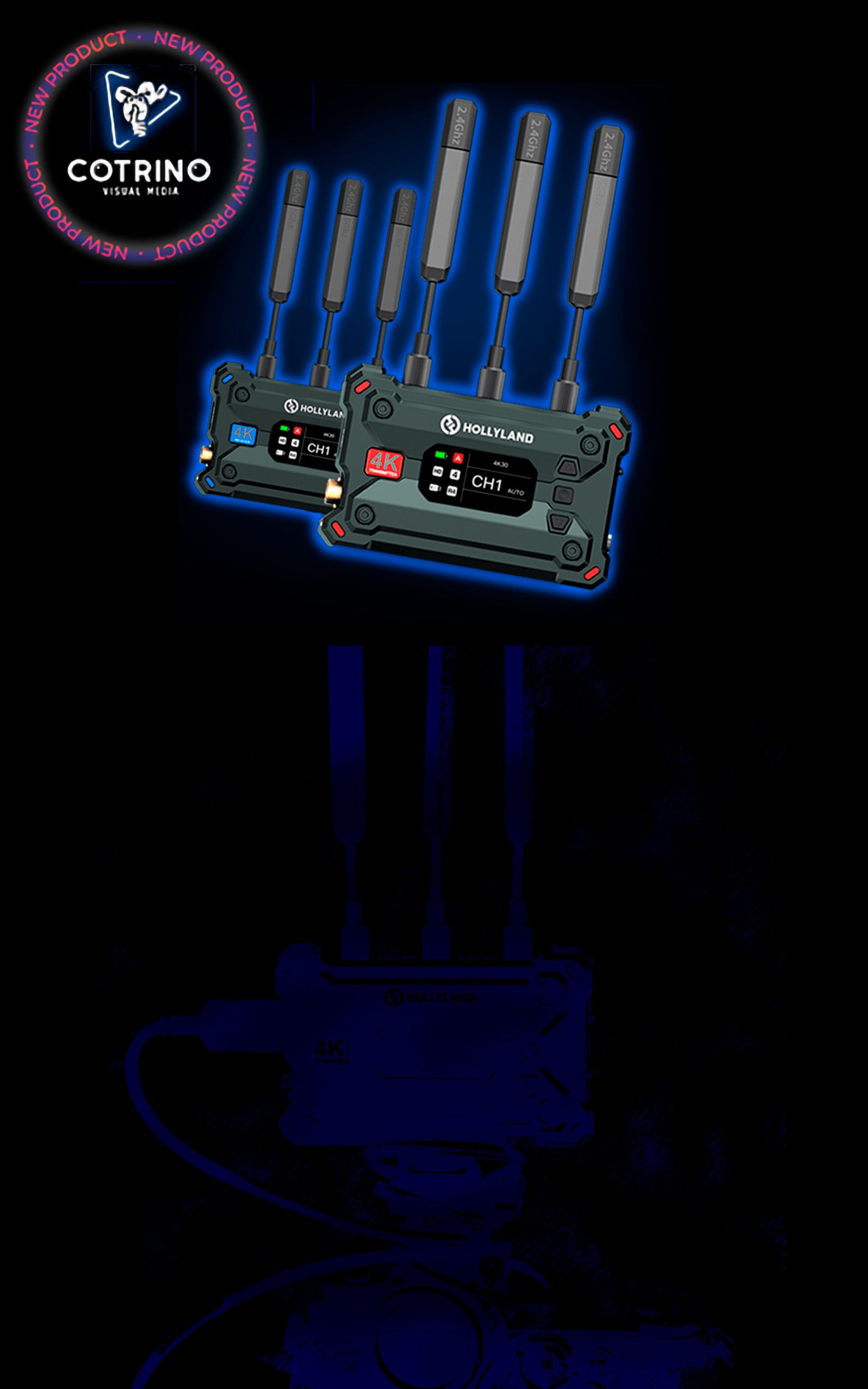 El sistema de transmisión de video inalámbrico Cosmo C1 SDI/HDMI de Hollyland le permite transmitir, de forma inalámbrica, video de alta resolución, de hasta 1080p60 a largas distancias de hasta 350 metros a un solo receptor.