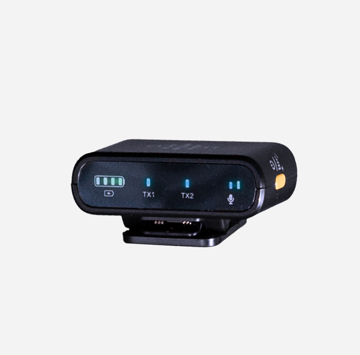 El receptor de doble canal se conecta fácilmente a la entrada de audio de su cámara de video o fotografía, utilizando el cable TRS de 3,5 mm incluido. Simplemente encienda el receptor y los transmisores, que se emparejan automáticamente. Ajuste los niveles de volumen con las perillas intuitivas en el receptor y estará listo. Esto le proporciona audio profesional de alta calidad, sin complicaciones ni menús complejos, permitiéndole concentrarse solo en grabar.