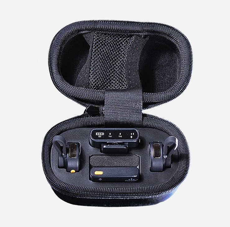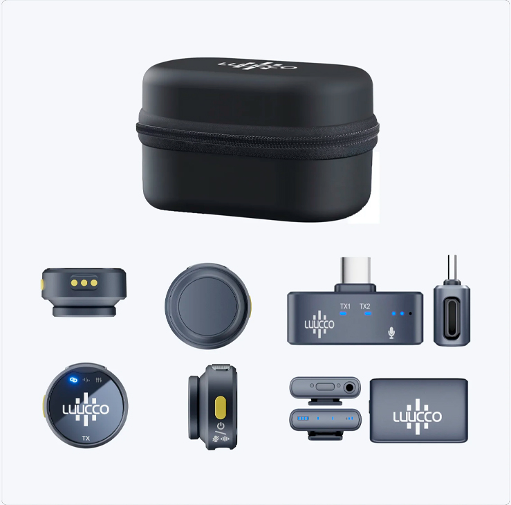 El sistema Luucco Airwave Pro viene protegido por un estuche de carga con un elegante diseño que evoca la sensualidad del cuero, fácil de transportar y con recarga rápida. Los transmisores son increíblemente discretos, y sus clips flexibles facilitan el posicionamiento perfecto sobre el personaje, sin causar molestias o distraer la atención. La integración es fluida y sencilla; el sistema se empareja al instante, permitiéndole a usted y a su sujeto concentrarse en la toma, logrando un audio profesional en cualquier locación con la máxima comodidad y estilo.