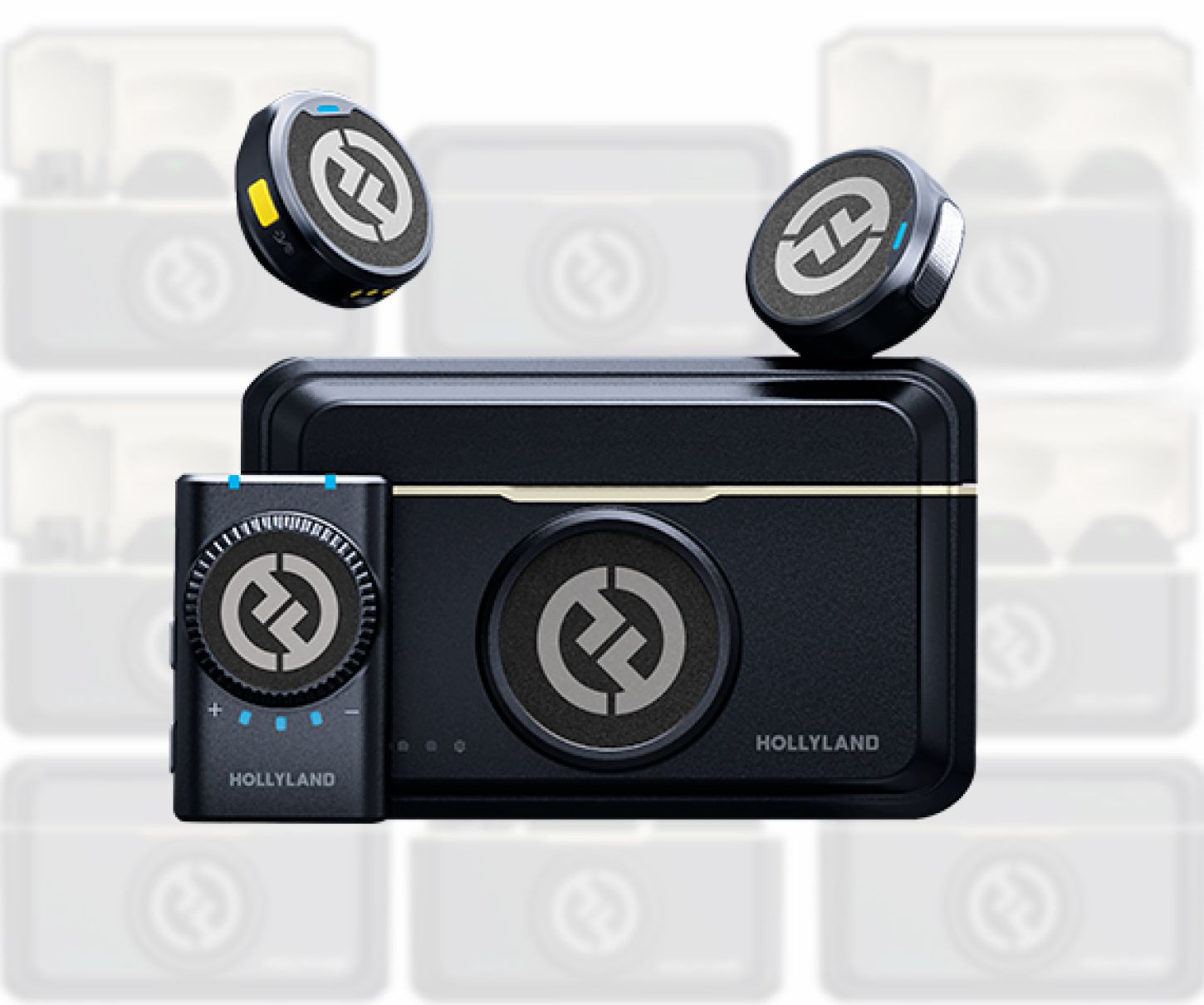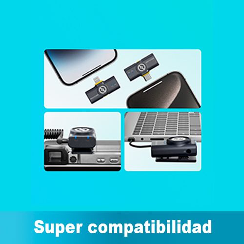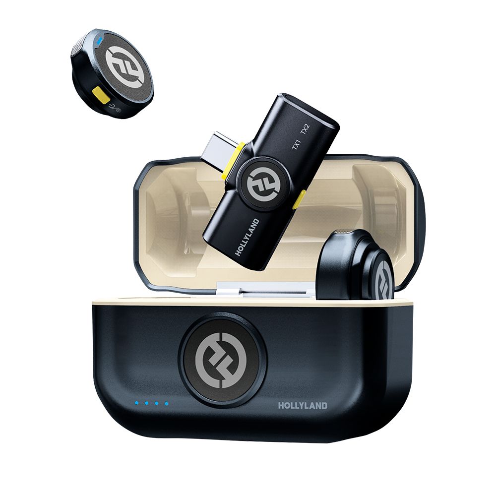 El sistema incluye dos transmisores con micrófonos omnidireccionales incorporados y conectores compatibles con Iphone y Android, tres receptores diferentes y un estuche de carga. Los clips magnéticos de los transmisores y los estuches de silicona para collares, facilitan la conexión de los transmisores, a los personajes. Varios cables adaptadores y un soporte de zapata para cámara integrado garantizan una amplia compatibilidad de dispositivos.
