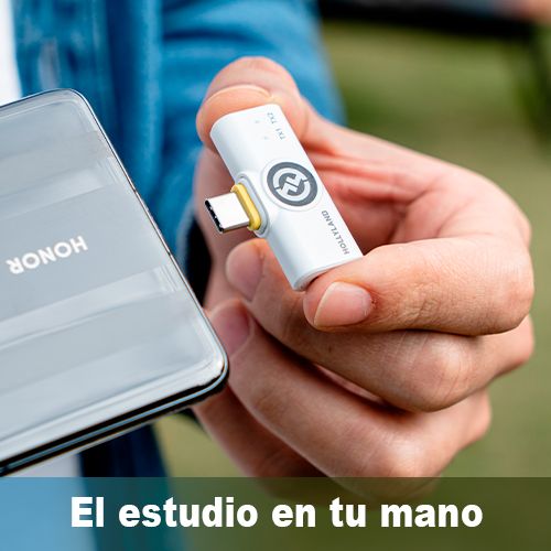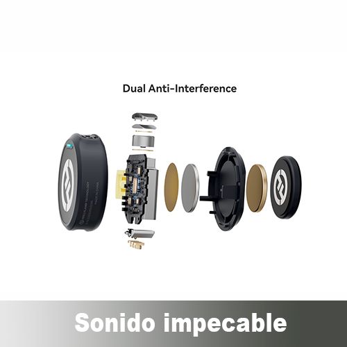 - El sistema de micrófono inalámbrico permite grabar dos personalidades a la vez en su dispositivo iOS o Android.