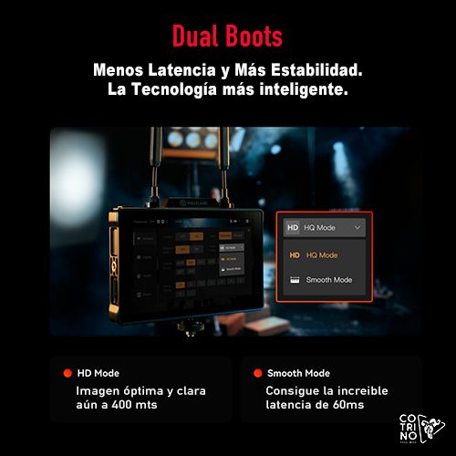 • Tecnología WifiBroadcast que permite que un transmisor se conecte a cuatro receptores con señales estables, lo que ofrece más flexibilidad cuando surgen necesidades de monitoreo adicionales en el set.