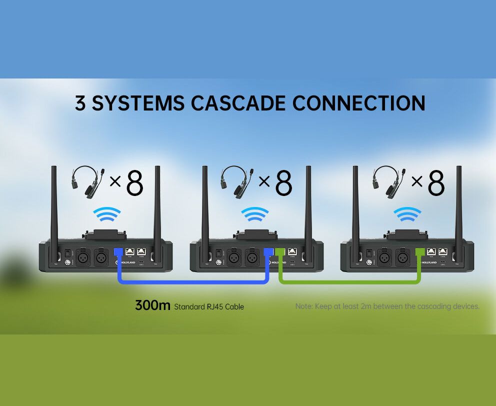 Con su reciente actualización de firmware, el sistema Hollyland Solidcom C1-4S le permite vincular hasta 7 auriculares remotos al auricular maestro sin usar un cerebro central.