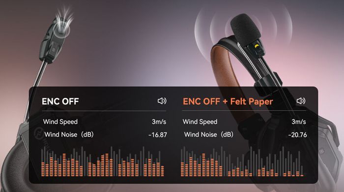 ¿Le preocupa el ruido del viento en entornos de producción al aire libre? El Solidcom C1 Pro ofrece una solución versátil que evita que el flujo de aire golpee directamente el micrófono. Con el papel de fieltro Y5 diseñado para el micrófono principal como filtro de viento, así como la almohadilla del micrófono, los auriculares pueden reducir el ruido del viento en 20,76 dB. Puede disfrutar de total tranquilidad en entornos de producción donde el ruido del viento es un desafío importante.